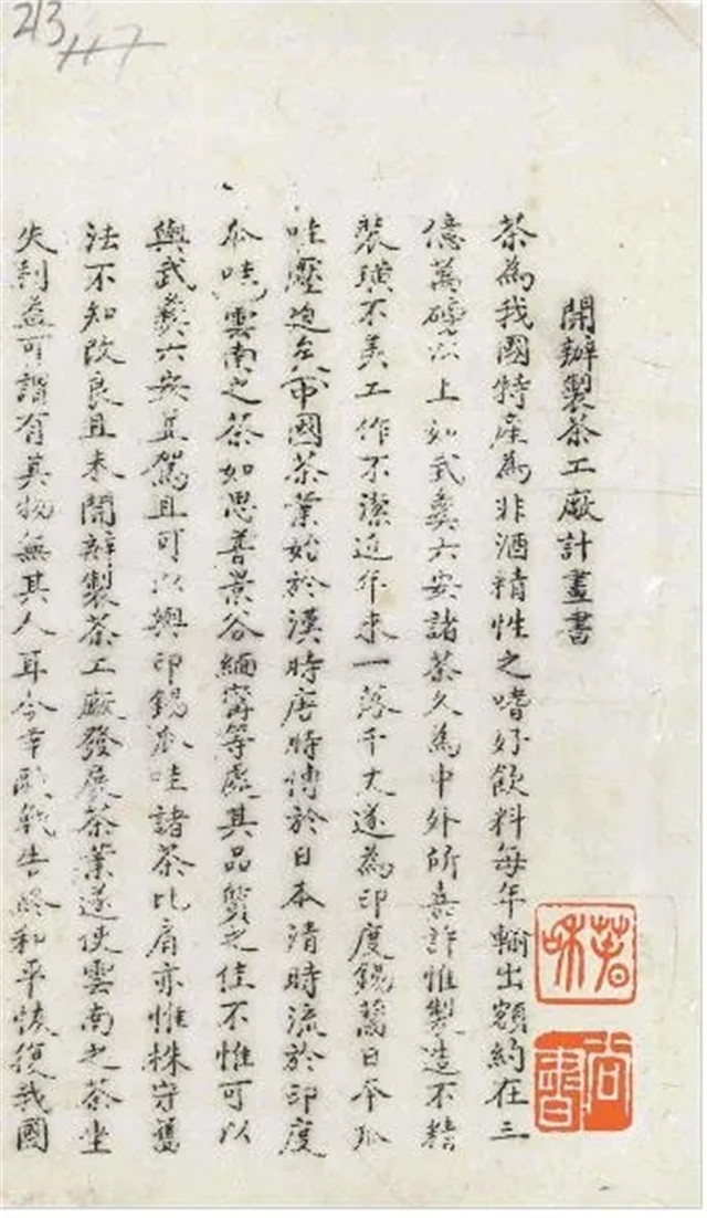 1920年10月,朱文精、陳洪疇擬制的《開辦制茶工廠計畫書》(節(jié)選)