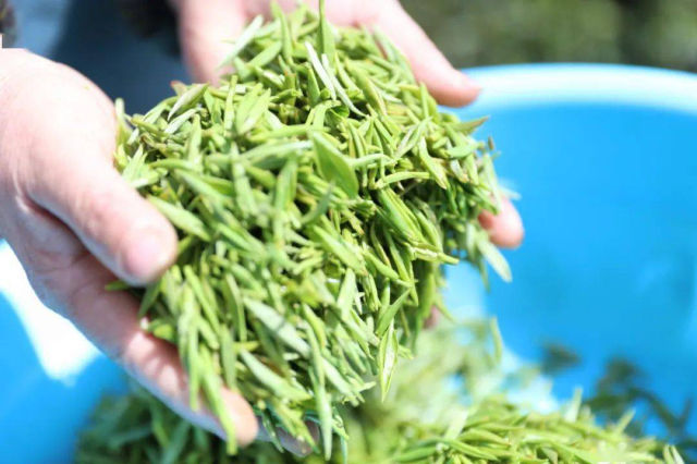 “因?yàn)殡x家比較近,所以每年采茶的時(shí)候我都會(huì)來。老板以每斤40元的價(jià)格進(jìn)行收購,中午的時(shí)候還發(fā)面包和水。”肖書琴一邊熟練地采摘著嫩綠的茶葉,一邊笑著說。采茶只能掐枝葉上的一點(diǎn)點(diǎn)嫩芽,所以采一斤茶需要大半天的時(shí)間。