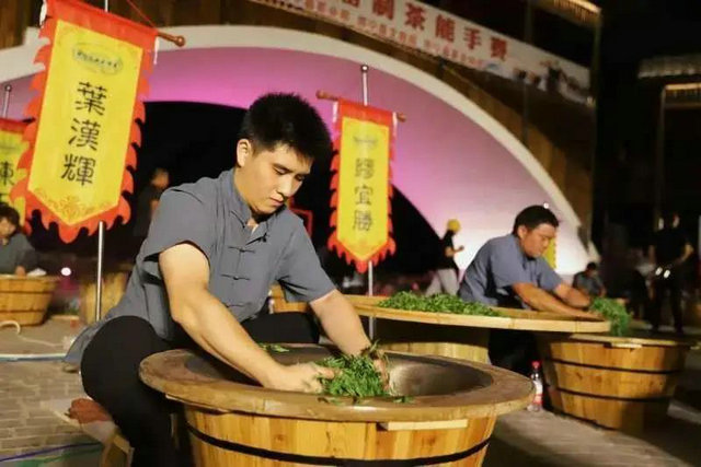 比賽現(xiàn)場,手工制茶師們紛紛亮出絕活。只見制茶師將茶葉快速入鍋,嫻熟的雙手在溫度200攝氏度左右的炒鍋中翻轉(zhuǎn)騰挪。經(jīng)過一遍遍翻炒、一遍遍揉捻、一遍遍抖散茶團(tuán),周寧高山云霧茶濃郁的清香撲鼻而來。