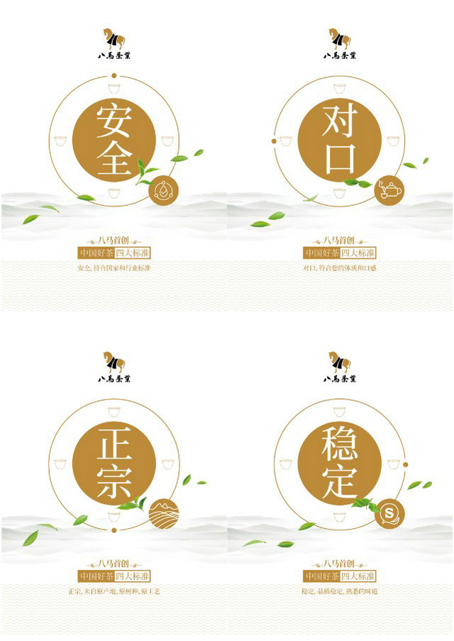 為保證茶葉品質(zhì)的穩(wěn)定與安全,八馬茶業(yè)不僅首創(chuàng)性提出中國(guó)好茶四大標(biāo)準(zhǔn):安全、對(duì)口、正宗、穩(wěn)定。從茶葉種植、加工,到物流、銷售、管理,八馬茶業(yè)的標(biāo)準(zhǔn)化體系超過(guò)30項(xiàng),在服務(wù)領(lǐng)域規(guī)范了110多項(xiàng)統(tǒng)一標(biāo)準(zhǔn),并建立全程質(zhì)量安全追溯系統(tǒng),一旦產(chǎn)品出現(xiàn)問(wèn)題,責(zé)任可追究,產(chǎn)品可召回。2019年,在中國(guó)好茶的標(biāo)準(zhǔn)上,八馬茶業(yè)再度建立三大選品標(biāo)準(zhǔn):名家之作、非遺技藝、黃金產(chǎn)區(qū)。