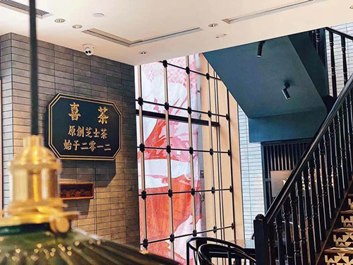 喜茶起源于江門,成長于廣東。將新茶風(fēng)帶給世界的同時,喜茶仍在回頭凝視自身中流淌的廣府文化基因。喜茶整合永慶坊傳統(tǒng)建筑與廣東茶文化特點(diǎn),讓新與舊達(dá)到平衡,使店面擁有現(xiàn)代藝術(shù)也有傳統(tǒng)老廣氣息,并將老廣州元素融入空間:三雕一彩一繡,青石磚,銅板浮雕,滿洲窗、趟櫳門、騎樓街,讓嶺南文化在新式茶文化中靈動延續(xù)。